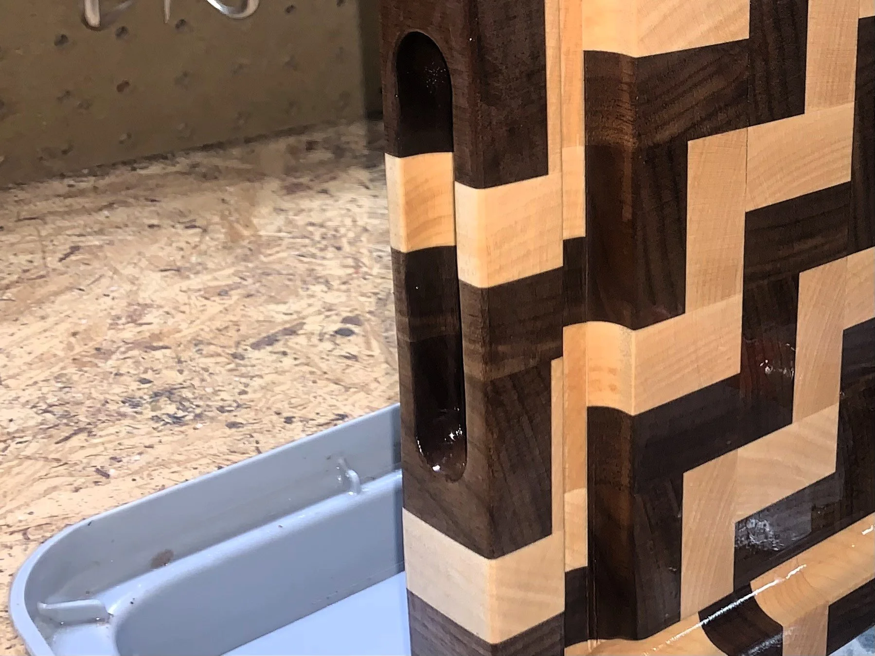 Your hand-crafted Dusty Board will come standard with a slight chamfer on the edges, rubber feet for stability and finished with an application of oil and two coats of Dusty Butter. Included with your purchase is a 4 oz tin of our Dusty Butter to maintain your Board in the future. You can customize your Dusty Board by trimming it with an optional 3/4” “juice groove,” and “hand holds” in the form of either finger holds or finger grabs for ease in handling. Pictures of these trim options can be found below.